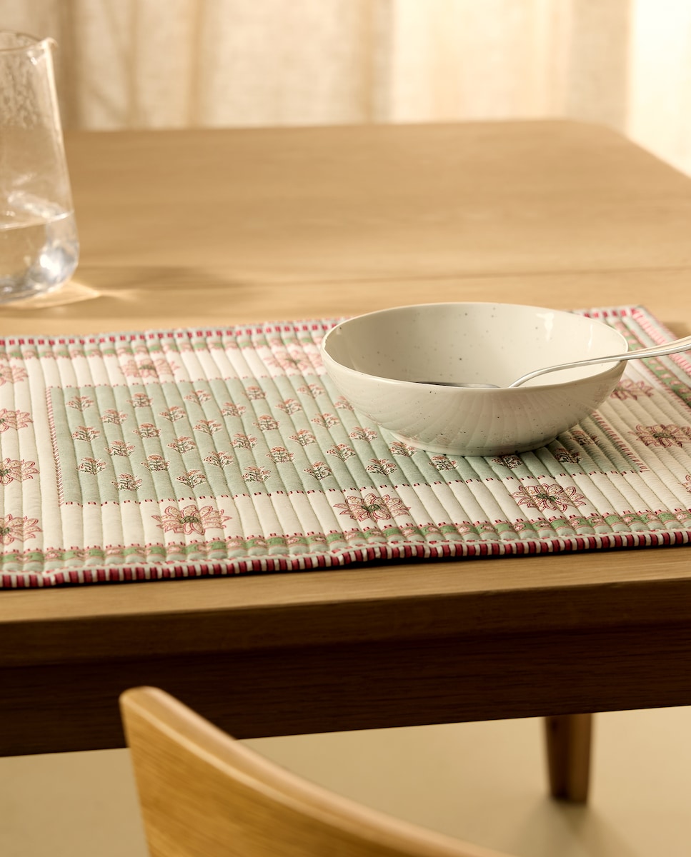- El block print consiste en tallar un dibujo sobre un bloque de madera, a continuación, se sumerge en una bandeja de colores y, por último, se imprime en el tejido.