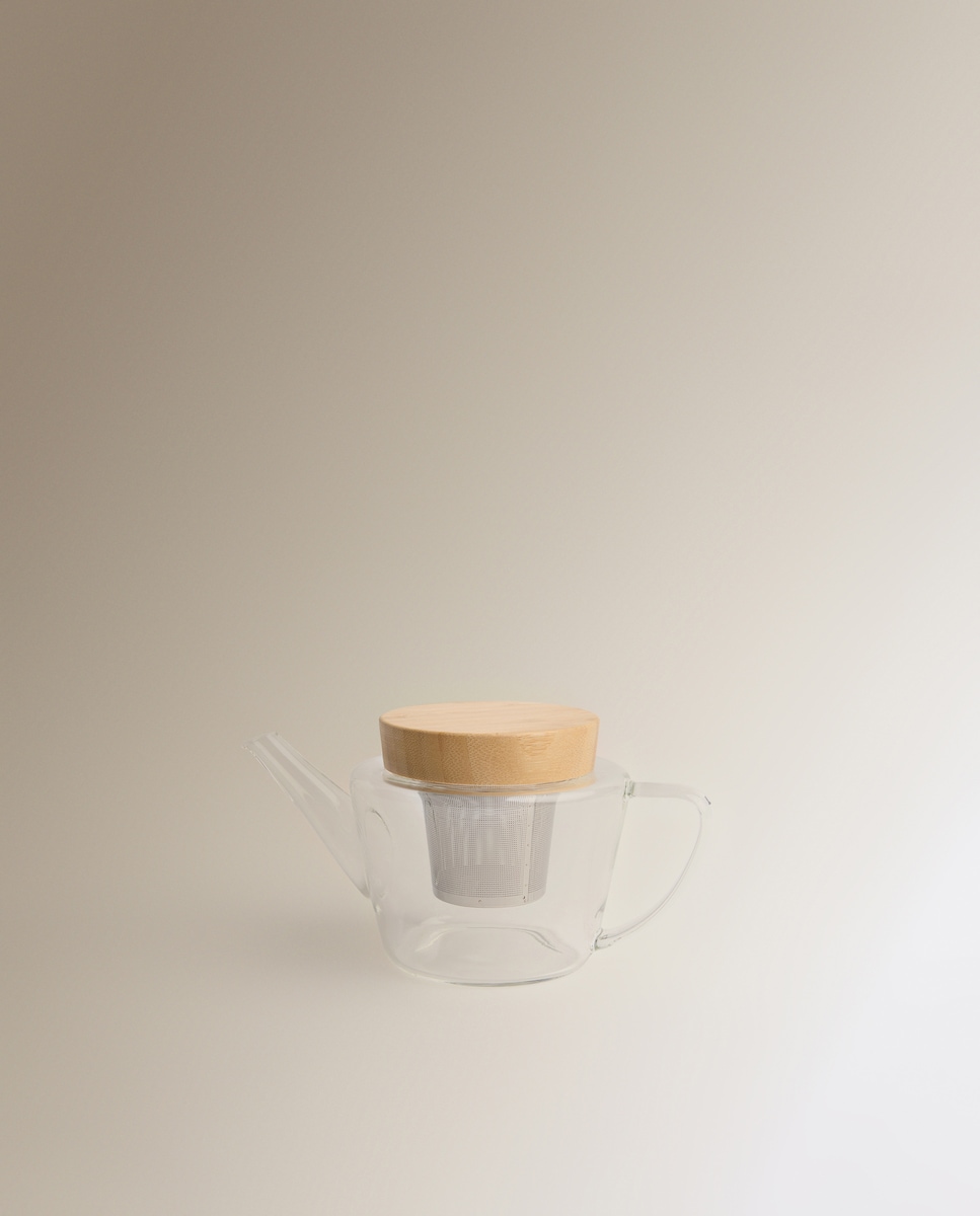 Chaleira com filtro infusor integrado que permite preparar chá diretamente no próprio recipiente. É fabricada em vidro resistente e possui uma asa para facilitar o serviço. Inclui uma tampa de bambu e é adequada para máquina de lavar loiça, exceto a tampa.