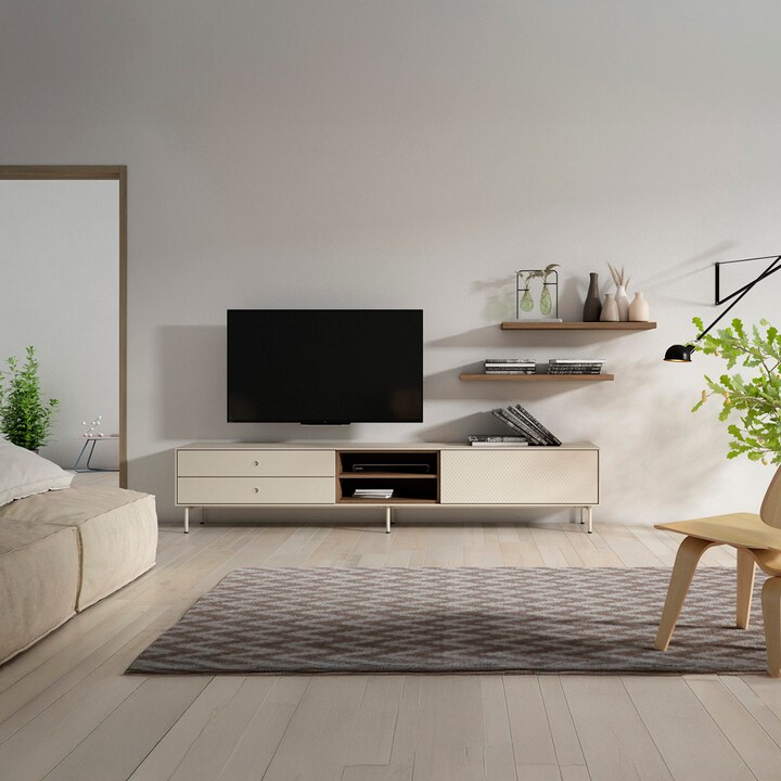 Móvel de sala retangular com 2 gavetas, porta e 2 nichos Evolution 2.0