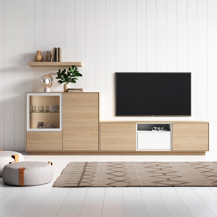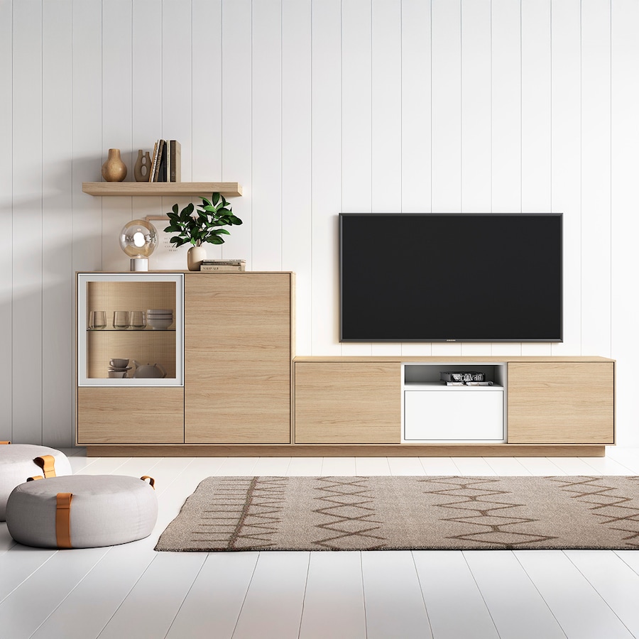 Móvel de sala modular com 4 portas, 1 porta de vidro e 1 nicho Evolution 2.0