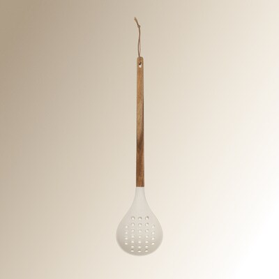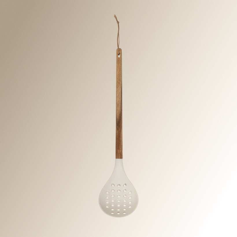 Escumadeira de silicone e madeira de acácia
