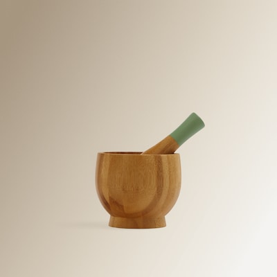 Morteiro de porcelana com cabo de madeira