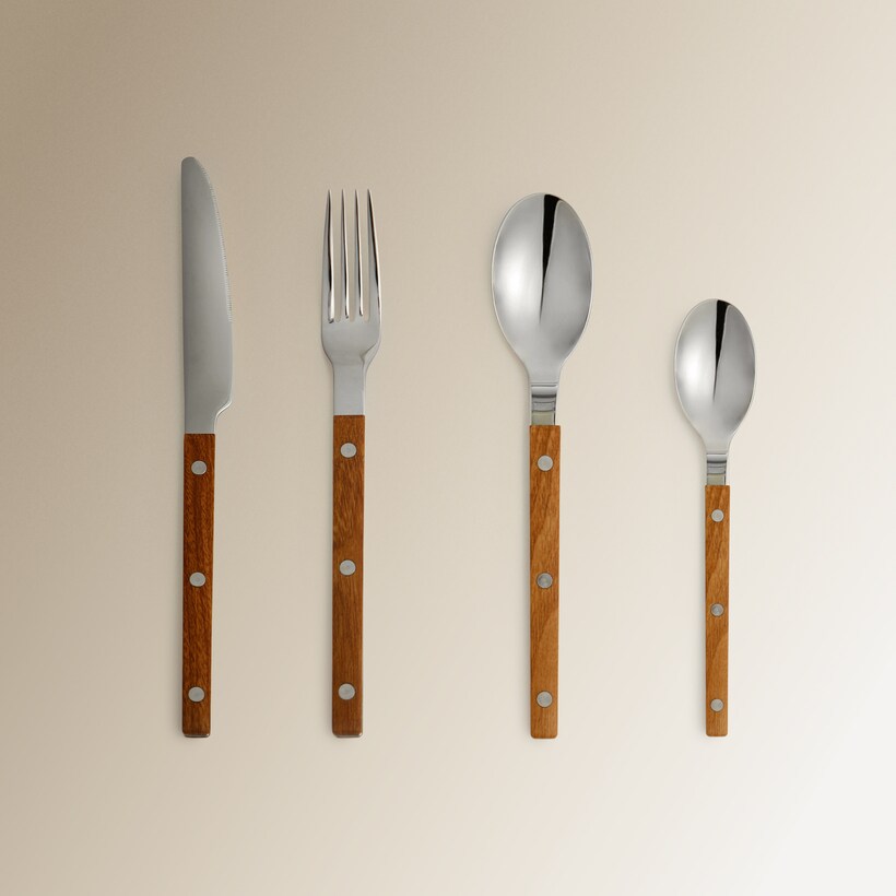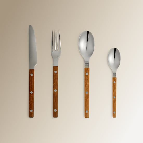 Faqueiro de 24 Peças de Aço Inoxidável e Bambu Natural