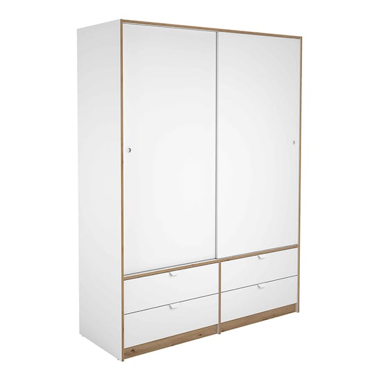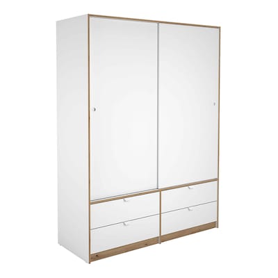 Meka BlockArmário de 2 Portas de Correr + 4 Gavetas - Branco Liso + Carvalho-Claro Puxador BrancoAdicionar