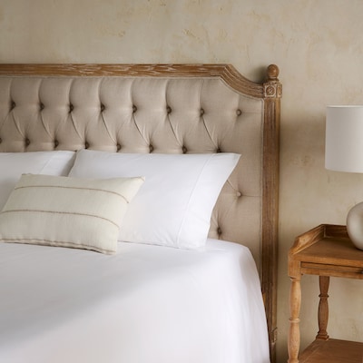 Cabeceira Dupla de Carvalho e Estofado Capitonê em Linho Provenza