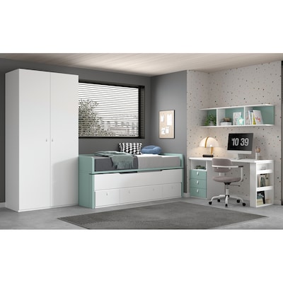 Quarto Juvenil 2 Camas com Encostos Baixos Robin - Branco/Azul