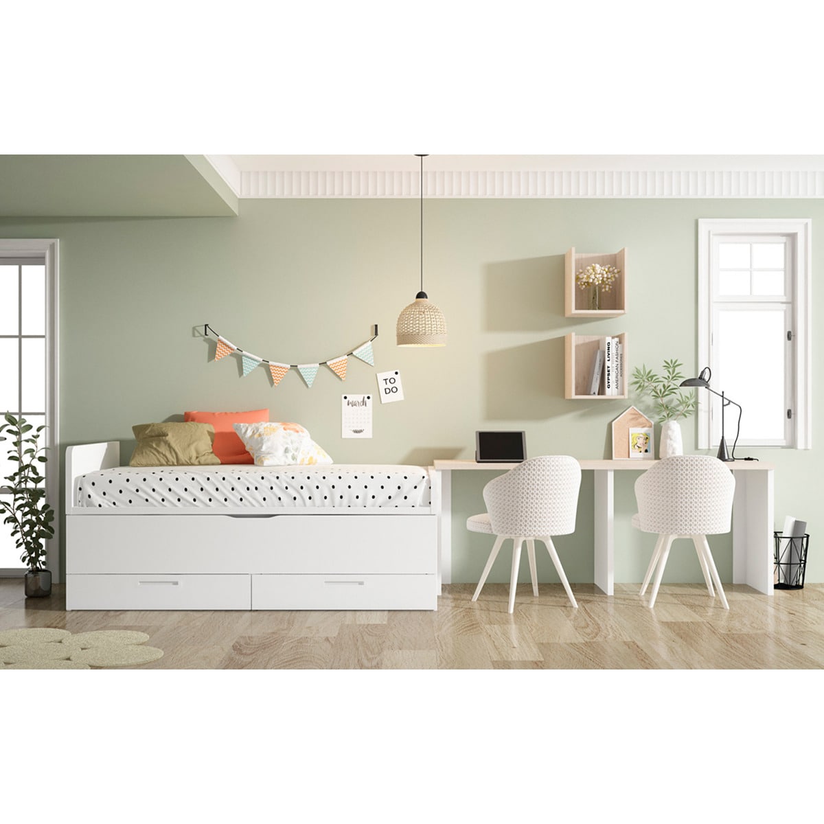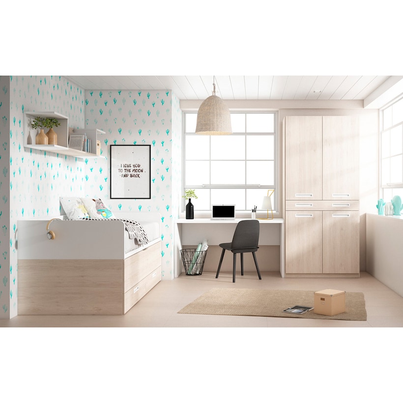 Quarto juvenil com cama rebatível horizontal branco Mio