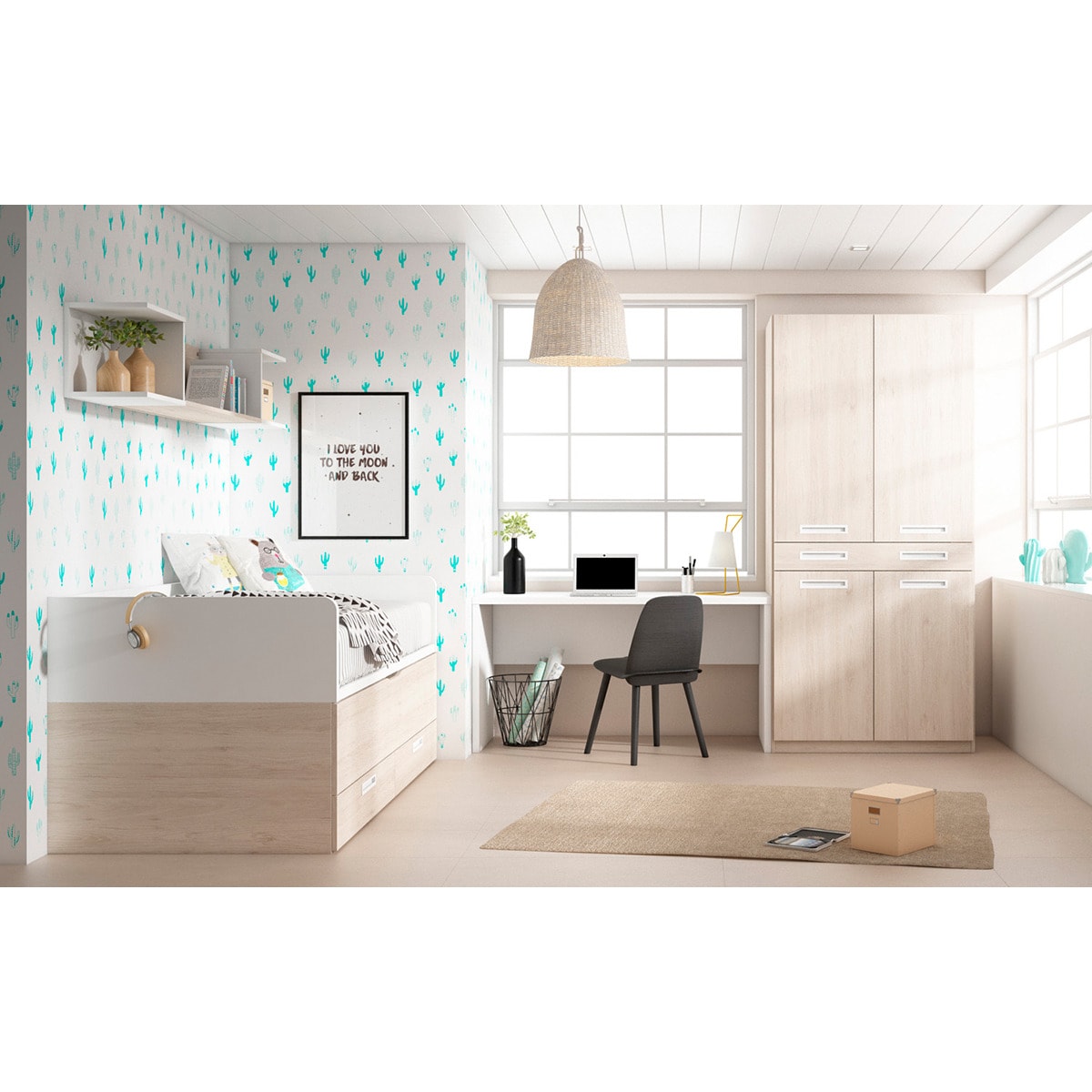 Quarto Juvenil com Cama com Gavetão de Encosto Baixo Mio
