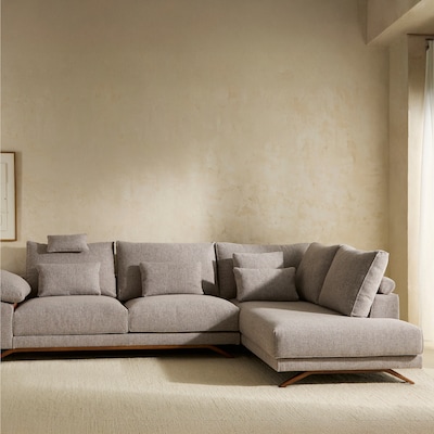 • Imagem 0 de Sofá de Canto de 5 Lugares com Terminal Direito em Tecido de Mistura de Algodão Aneka