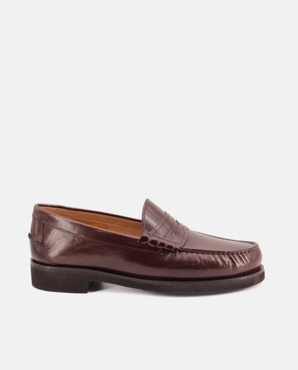 Mocassins em Pele de Bovino Tipo Croute com Sola de Borracha