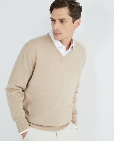 Camisola de Malha com Decote em Bico e em Lã 100% Caxemira