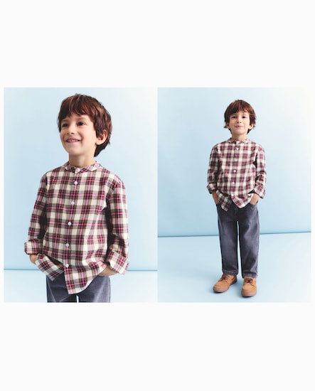 Camisa de Manga Comprida aos Quadrados Escoceses Clássicos