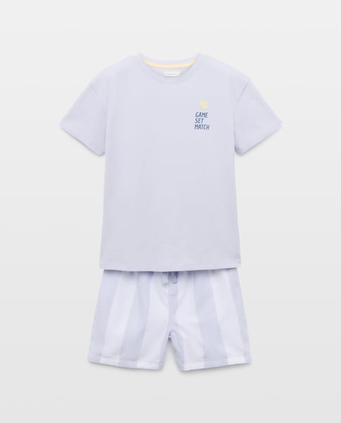 Pijama Curto Misto com Estampado de Fantasia