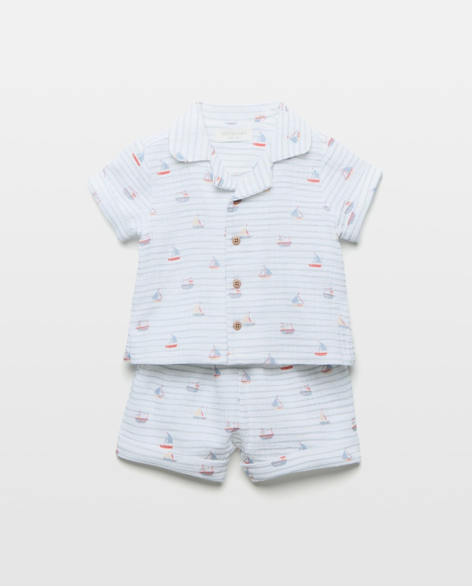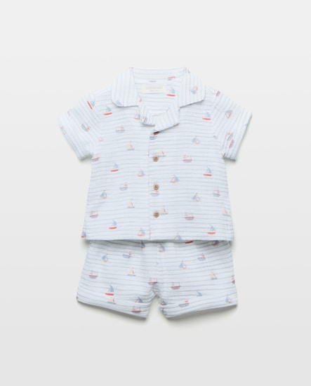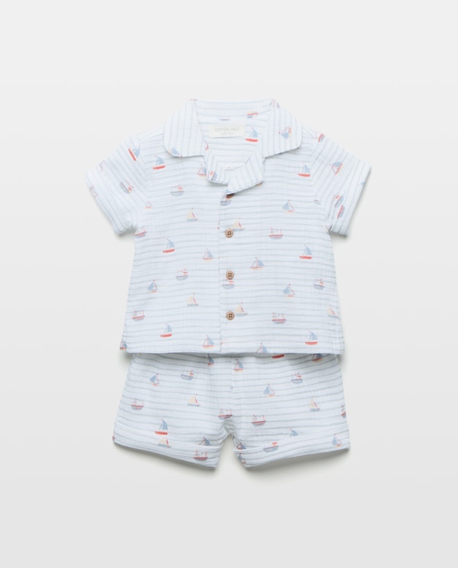 Pijama Curto de Bebé em Chiffon com Barcos