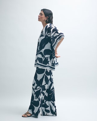 Calças Largas com Chiffon Estampado