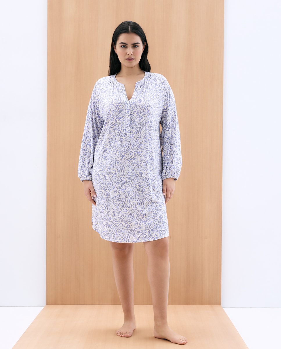 Camisa de Dormir Curta Estampada com Manga 3/4