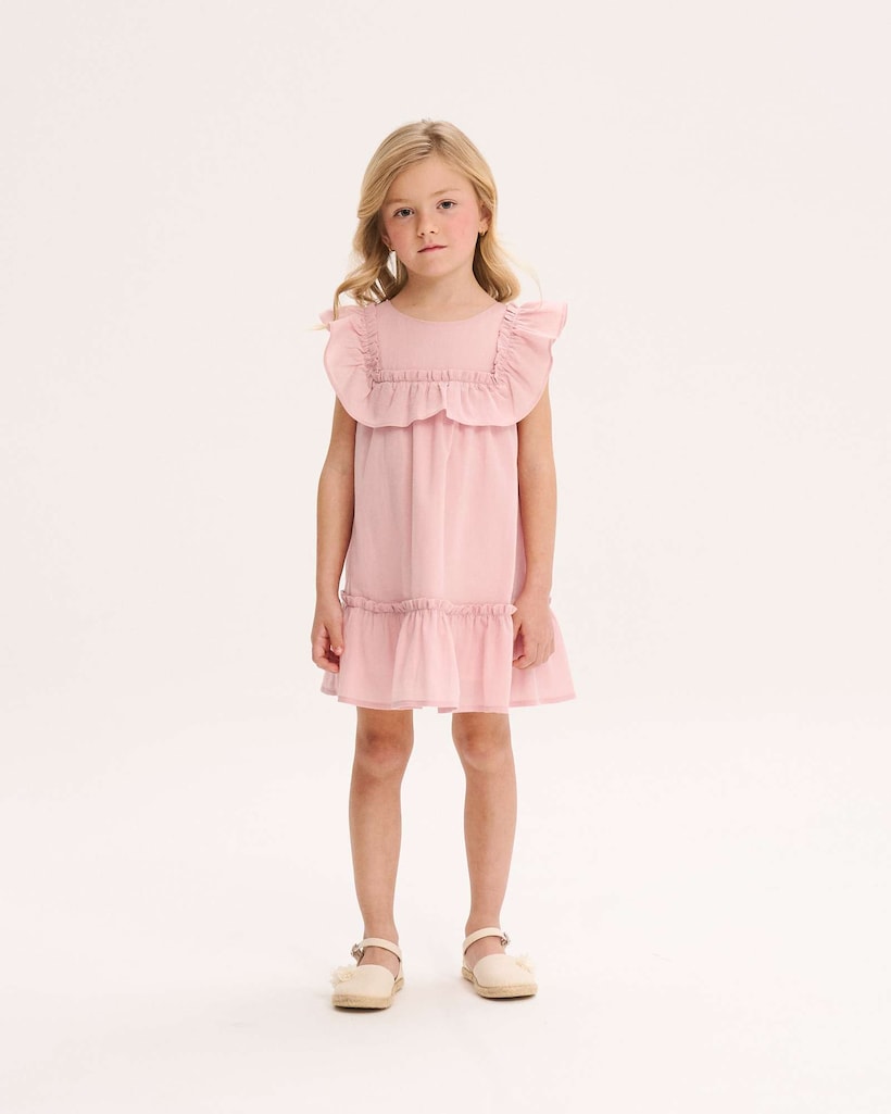 Vestido Infantil Às Riscas e com Folhos na Manga