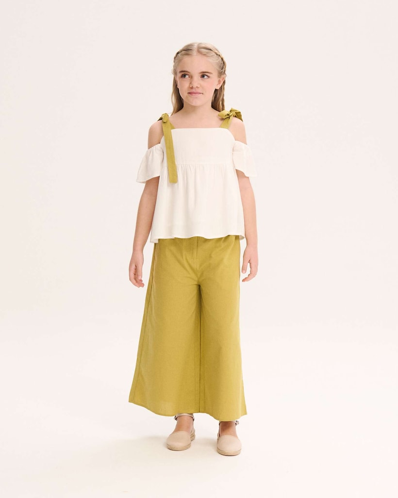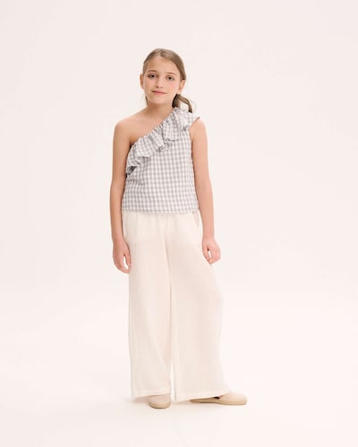 Blusa Aos Quadrados Assimétrica com Folho na Alça Infantil