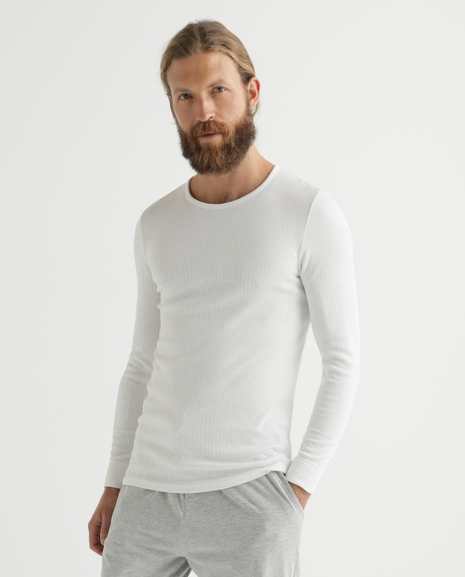 Camisola interior branca de homem com manga comprida