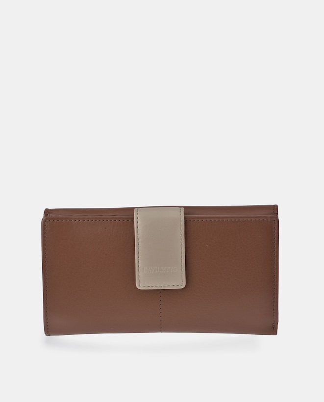 Porta-Moedas Grande em Pele com Secção para Notas e Aba