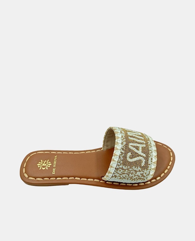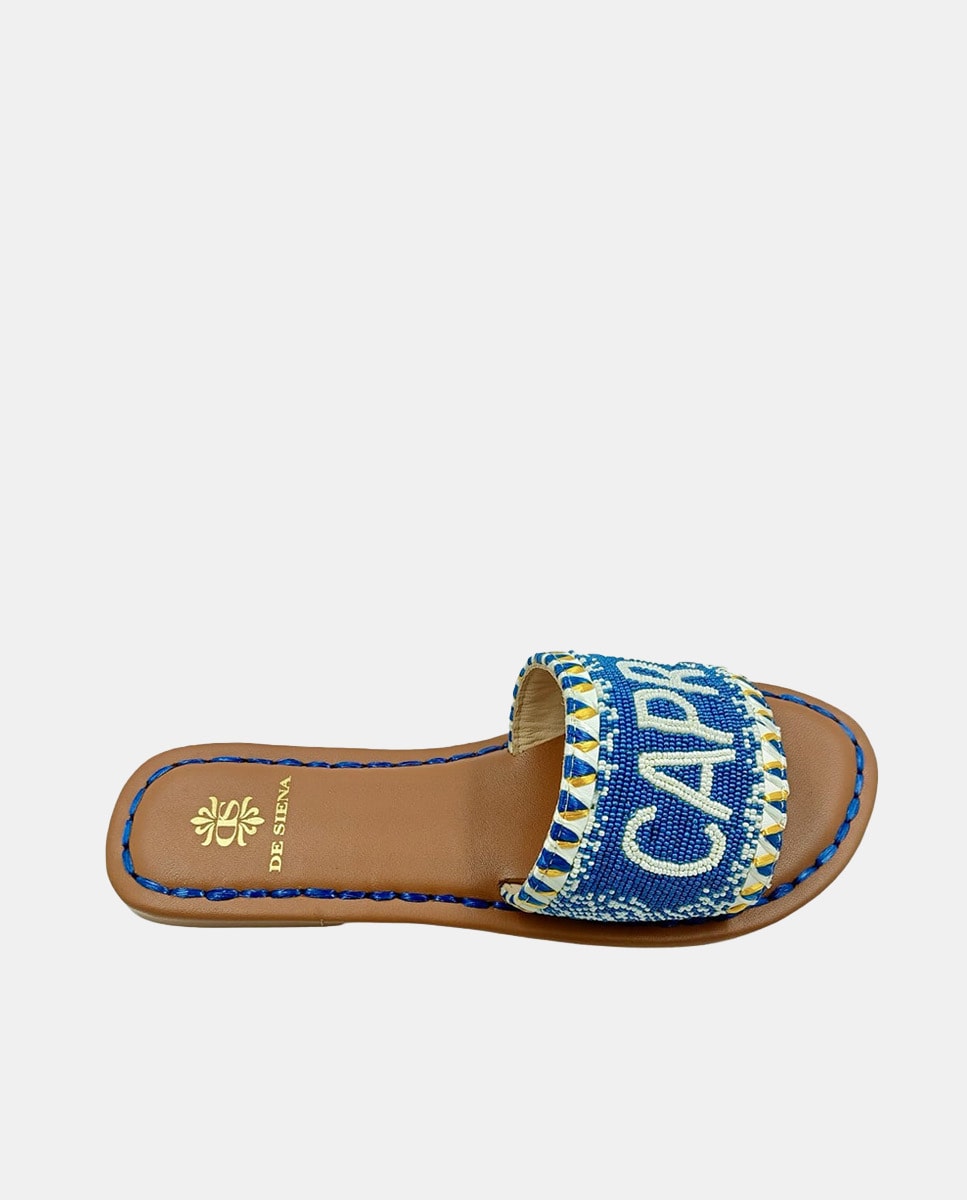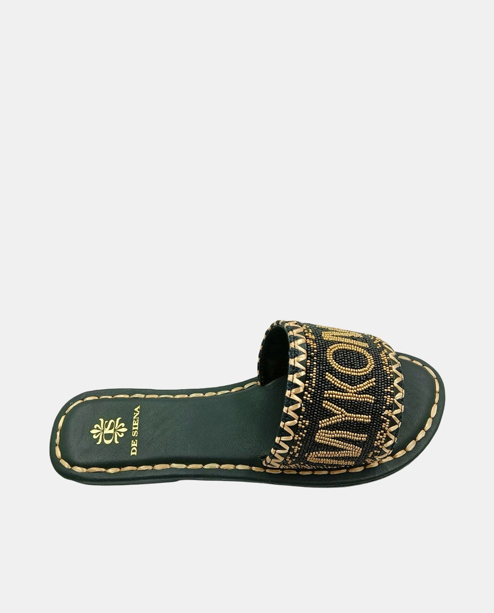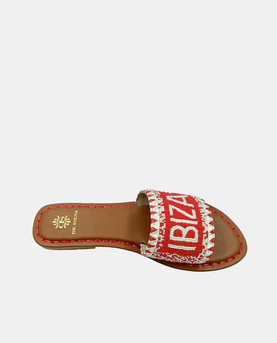 Sandálias Rasas de Dedo em Algodão com Atacadores de Missangas