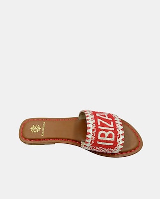 Sandálias Rasas com Fita de Algodão Decorada com Missangas e Bordado de Ráfia