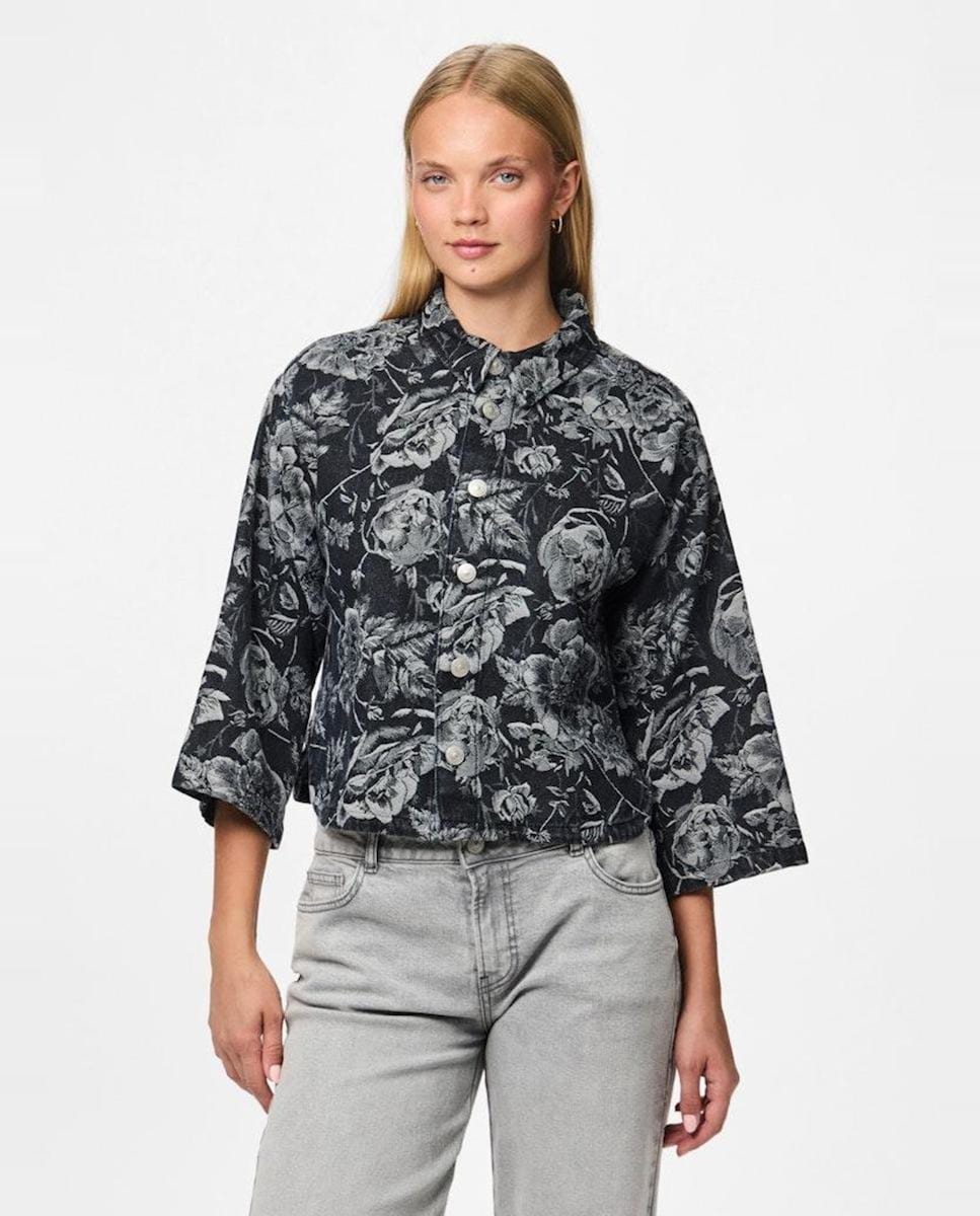 Blusão Denim Flowers Patchwork