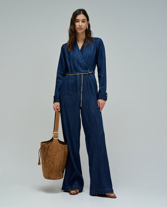Macacão em Light Denim com Perna Wide