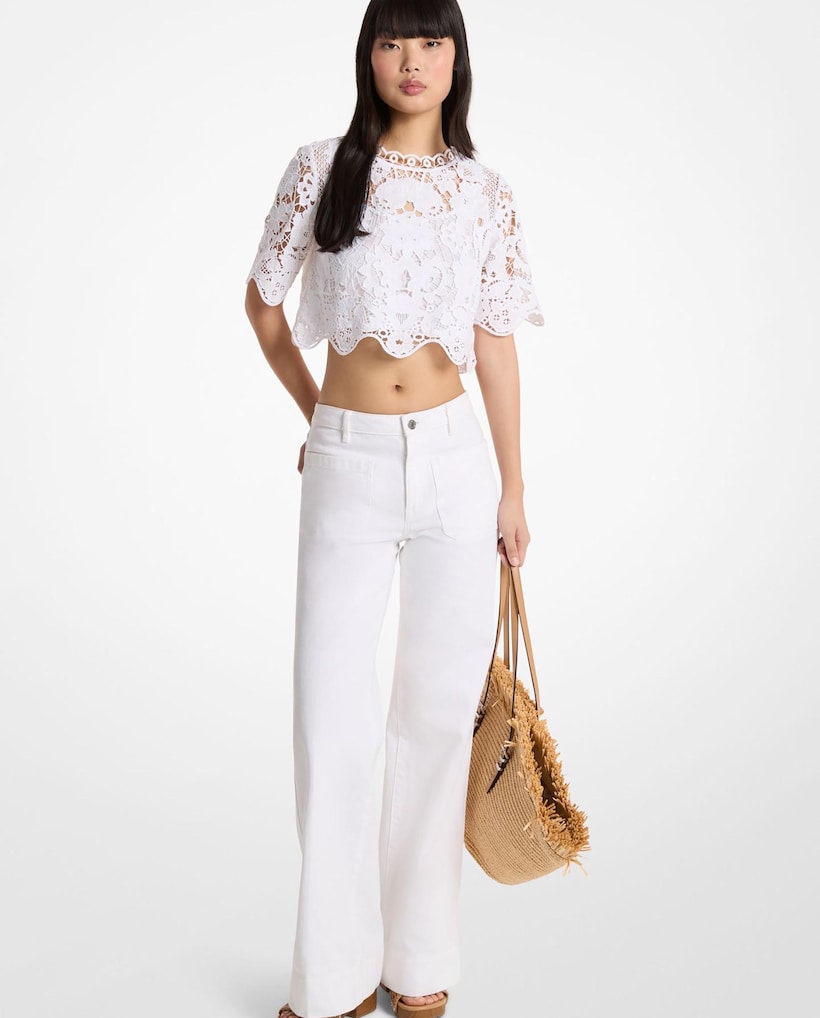 Jeans Largos Tipo Baggy Cruzados em Denim de Algodão