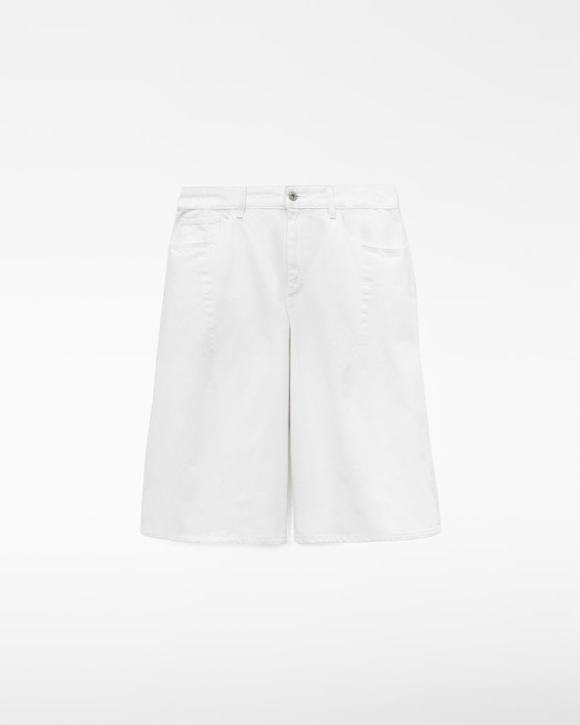Bermudas Compridas em Denim de Algodão
