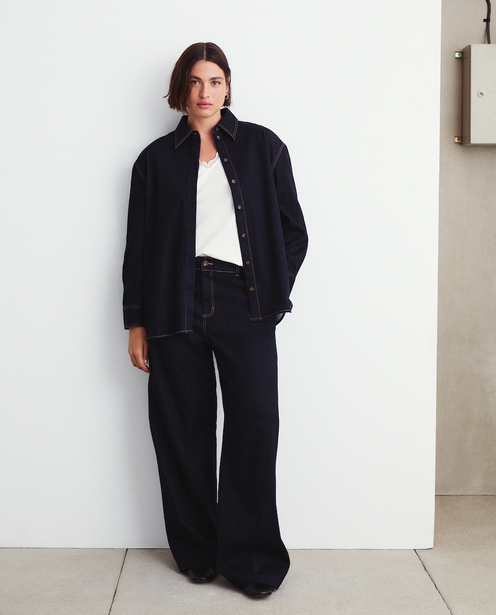 Alpercatas Rasas com o Calcanhar Aberto Estilo Peep Toe em Denim