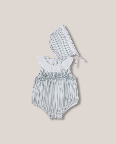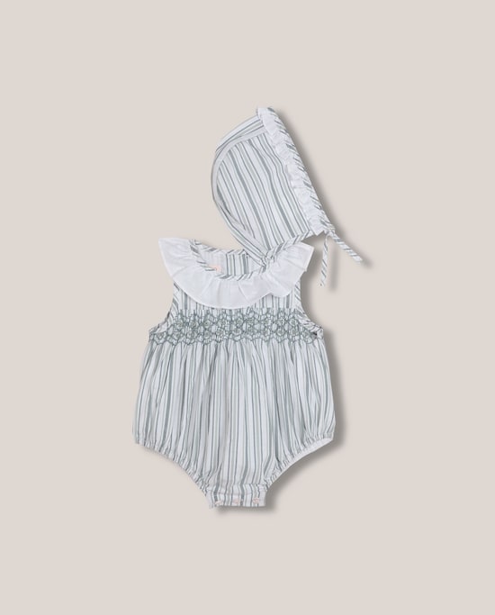 Macacão Curto para Bebé de Linho Às Riscas com Gola Grande