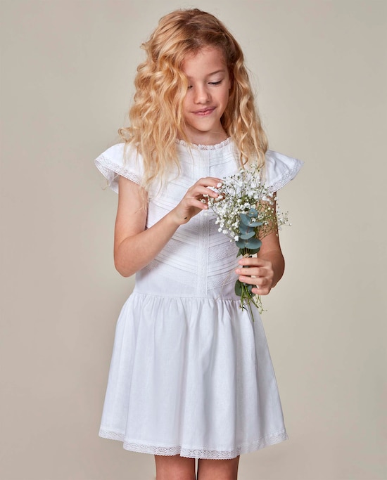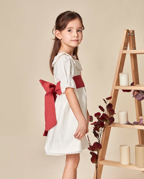 Macacão Curto de Linho para Bebé com Tiras Bordadas