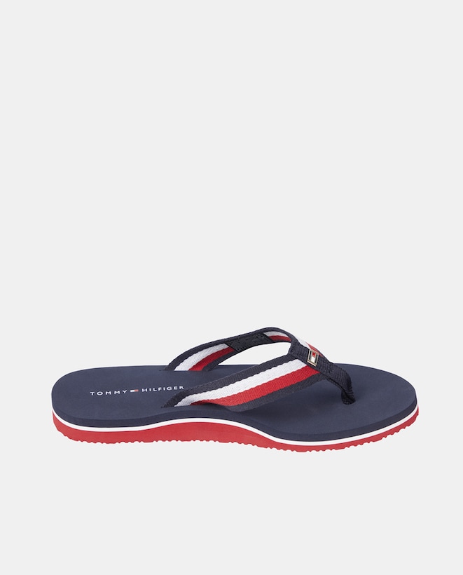 Chinelos com Tiras, Estampado às Riscas e em Têxtil