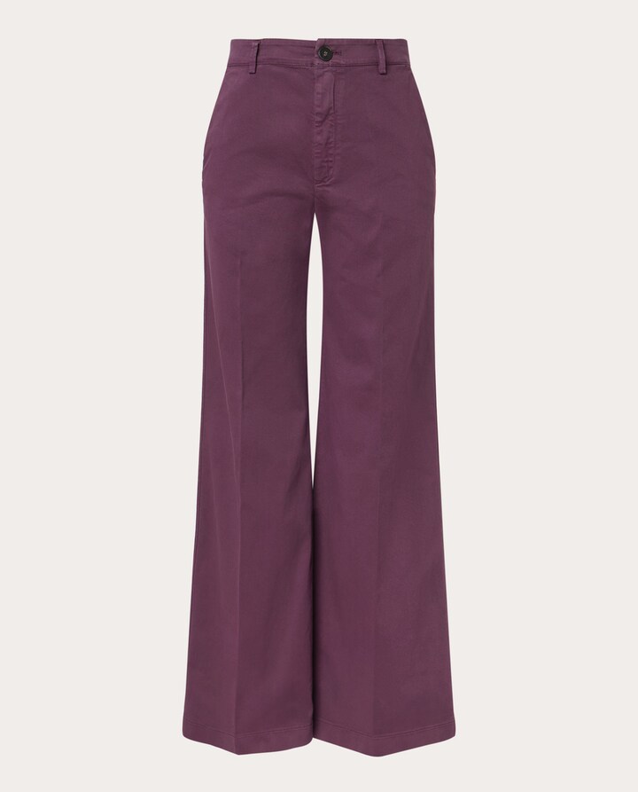 Calças largas de algodão de cintura alta com bolsos laterais e bolso de remendo atrás, presilhas para o cinto e fecho de botão e fecho de correr.