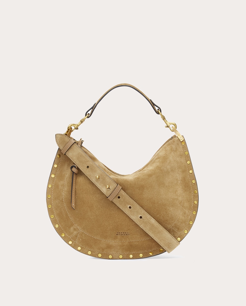 Oskan Bolsa de ombro em camurça macia com rebordo com tachas, alça de ombro ajustável e fecho de correr superior.