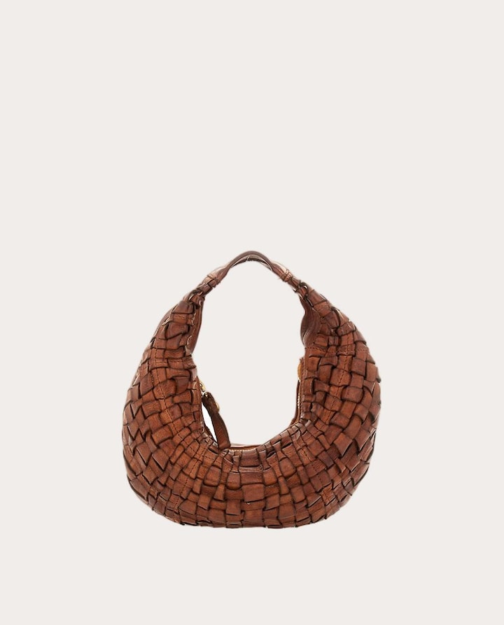 Mala de ombro Marisa, em pele natural, com uma pega grande para transportar à mão e fecho de correr.