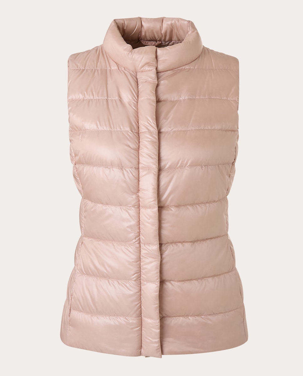 Colete Giulia de corte regular com gola alta curta e fecho de correr oculto à frente.