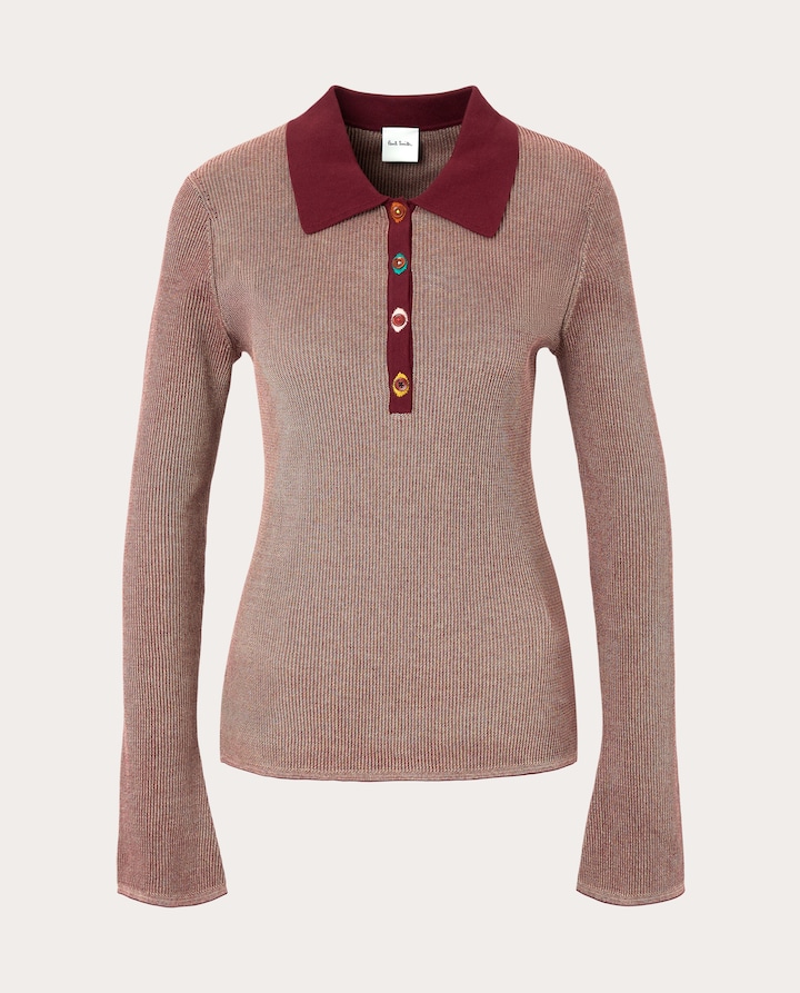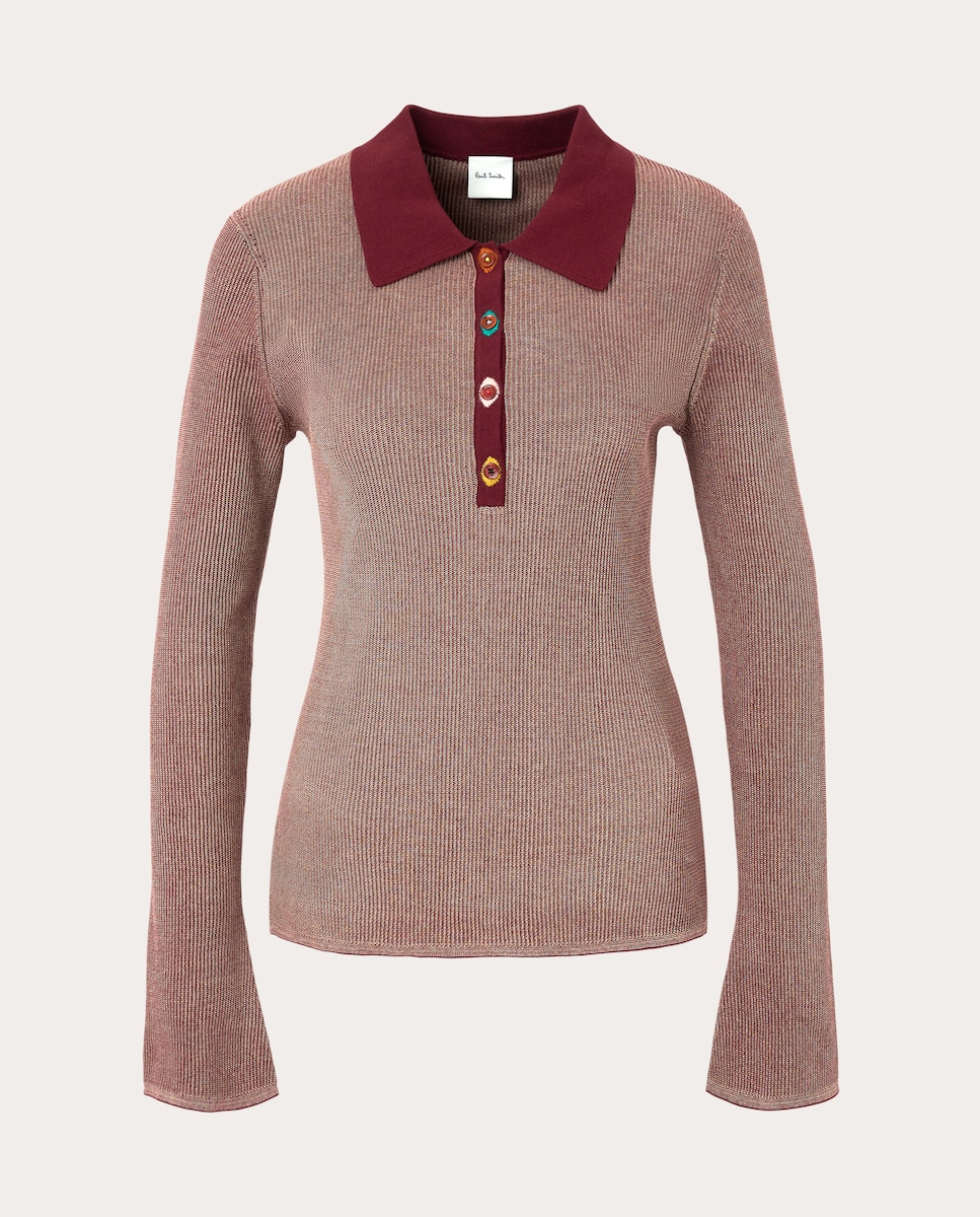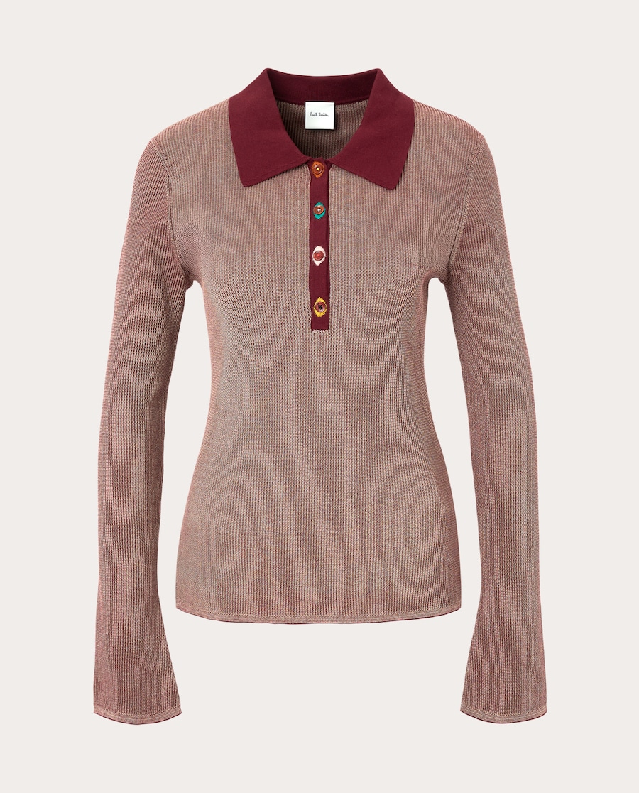 Camisola de algodão com gola de camisa, mangas compridas e decote fechado com botões à frente.
