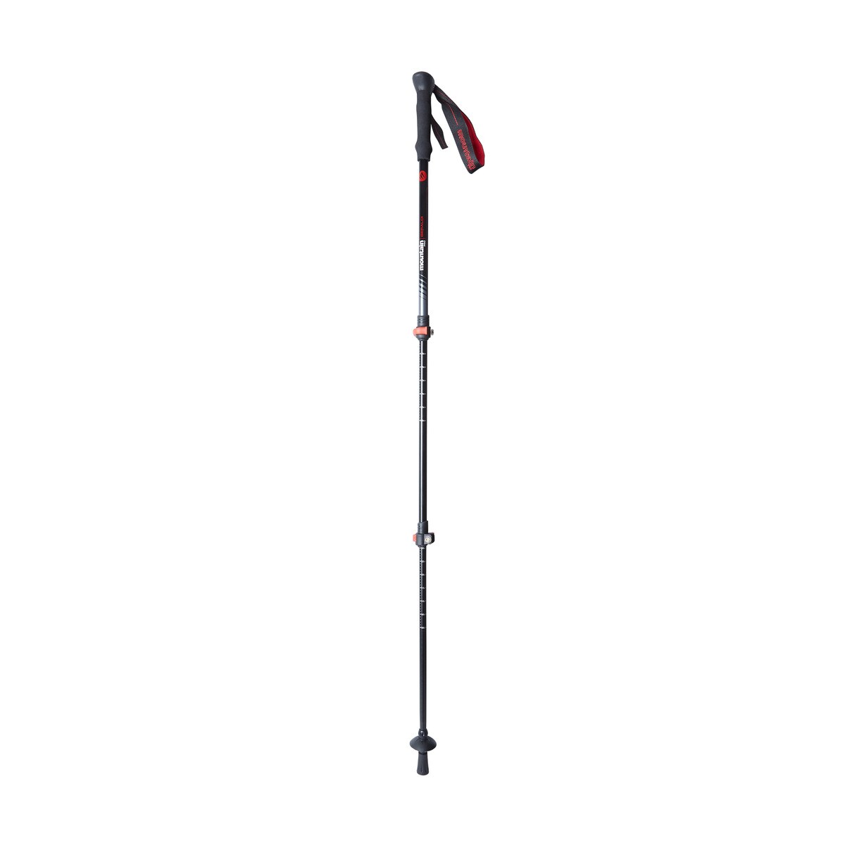 Bastão de caminhada com 3 secções de alumínio, punho em EVA, correia almofadada ajustável, sistema de fecho rápido e ponta de tungsténio.