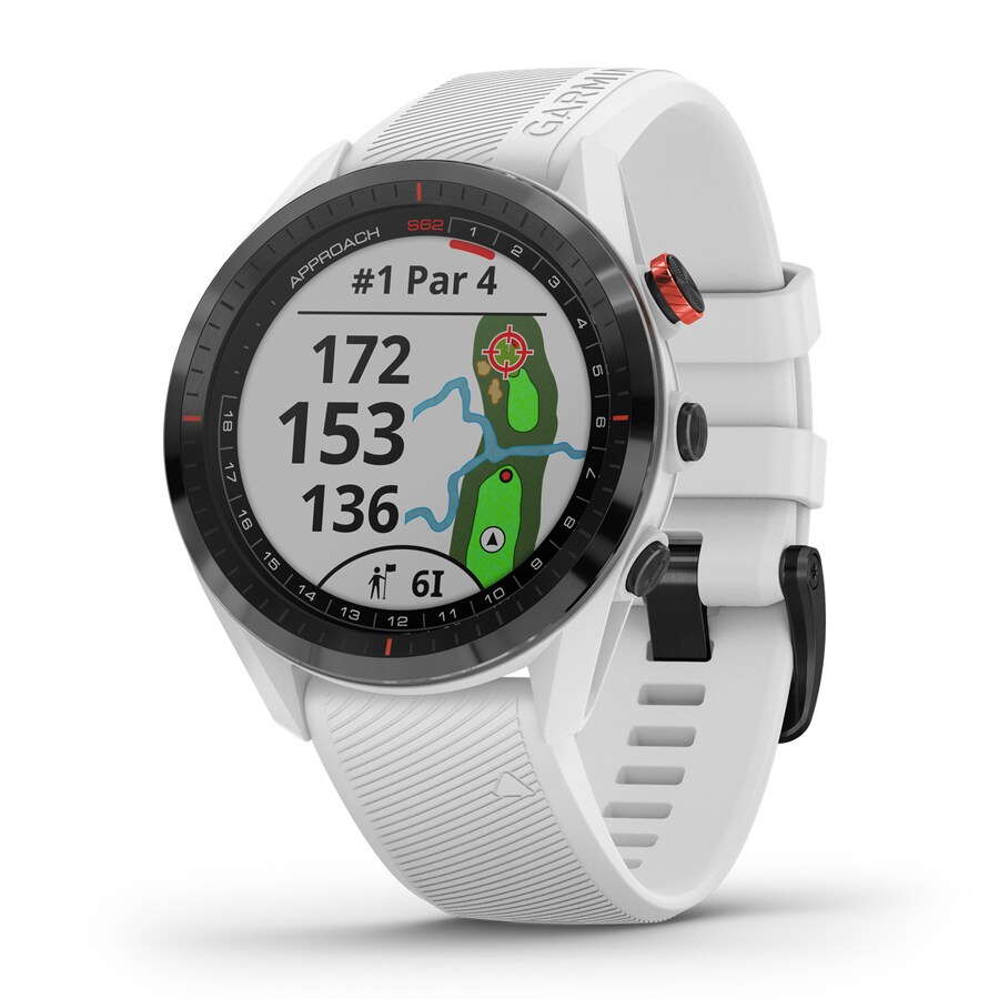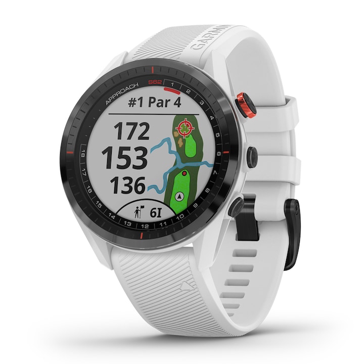 L'Approach S62 est une montre GPS de golf qui intègre les cartes et les informations essentielles dont vous avez besoin à votre poignet, le tout en couleur sur un écran tactile de 1,3 pouce. Améliorez votre score grâce à la nouvelle fonction caddie virtuel qui utilise les données de coups de vos précédentes parties, ainsi que les conditions de vent, pour déterminer le club que vous devez utiliser et où vous devez viser pour votre prochain coup. La fonction Playslike distance règle la distance en tenant compte de la vitesse, de la direction du vent, des obstacles et du dénivelé qui vous sépare de votre cible Effectuez un suivi de partie grâce à la fonction qui enregistre automatiquement la position et la distance de chaque coup détecté par la montre. Vous pouvez ensuite coupler ces données aux capteurs Approach CT10 pour un suivi plus précis de vos coups avec chaque club. Utilisez l'application Garmin golf (TM) pour analyser vos coups, participer à des tournois, des classements et disposer d'informations sur chaque terrain. Profitez pleinement de vos parties de golf avec une montre parfaite pour chaque occasion et tirez parti de ses fonctionnalités au quotidien, telles que le suivi de la fréquence cardiaque au poignet, le niveau de saturation d'oxygène dans le sang grâce au capteur Pulse Ox3, les notifications intelligentes, les fonctions de suivi d'activité et y compris Garmin Pay