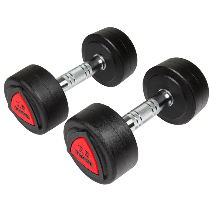Experimente a atmosfera do ginásio em a sua própria casa com os halteres Hammer feitos de poliuretano (PU) durável e antiderrapante. Trocas de discos demoradas são coisa do passado. Com especificações de peso definidas para cada haltere, tudo o que precisa fazer é pegá-los e o treino pode começar!