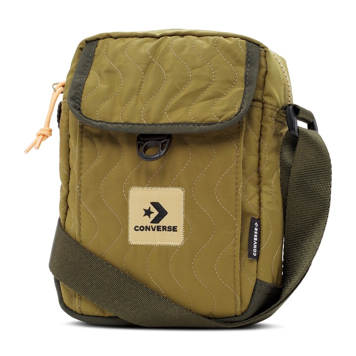 Mala a tiracolo confecionada em poliéster resistente. Fecho de aba ajustável para facilitar o seu uso. Fecho de correr exterior para maior segurança. Correias ajustáveis para um comprimento de transporte perfeito. Logotipo da Converse na parte frontal.