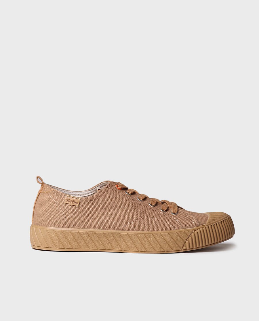 GIO-EL. Estes ténis baixos de homem estão elaborados em tecido reciclado em tons lisos. A sola é plana, tem 3 cm de espessura e está feita de borracha, leva um reforço de borracha na biqueira para maior durabilidade. A palmilha interior está forrada em algodão. Estes ténis são atados com atacadores para assegurar um ajuste perfeito ao pé. É um modelo 100% vegano. Este modelo calça o tamanho habitual, se estiver entre dois números escolha um tamanho mais pequeno.