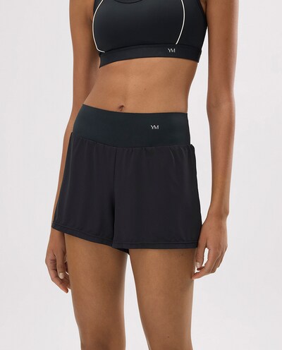 Calças Desportivas Curtas Compressivas com Short e Bolso Interior