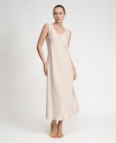 • Imagem 0 de Camisa de Dormir Comprida de Cetim Mate com Rendas