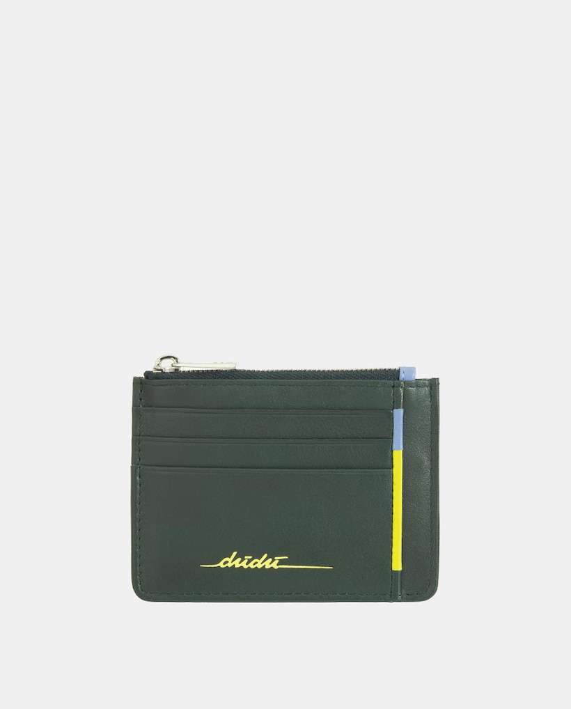Porta-Cartões em Pele de Bezerro Tipo Napa com Porta-Moedas de Fecho de Correr