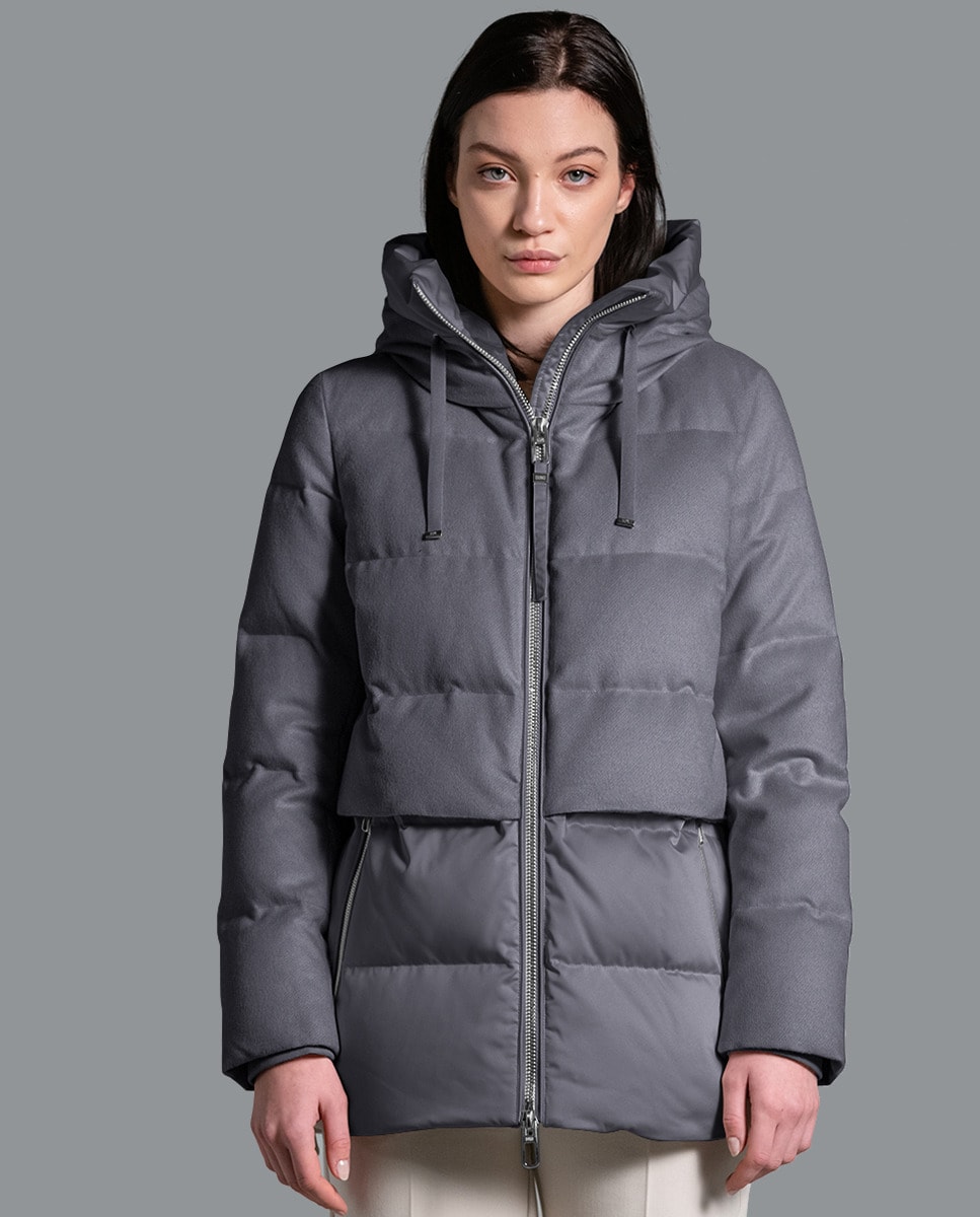Blusão Acolchoado Bimaterial com Capuz