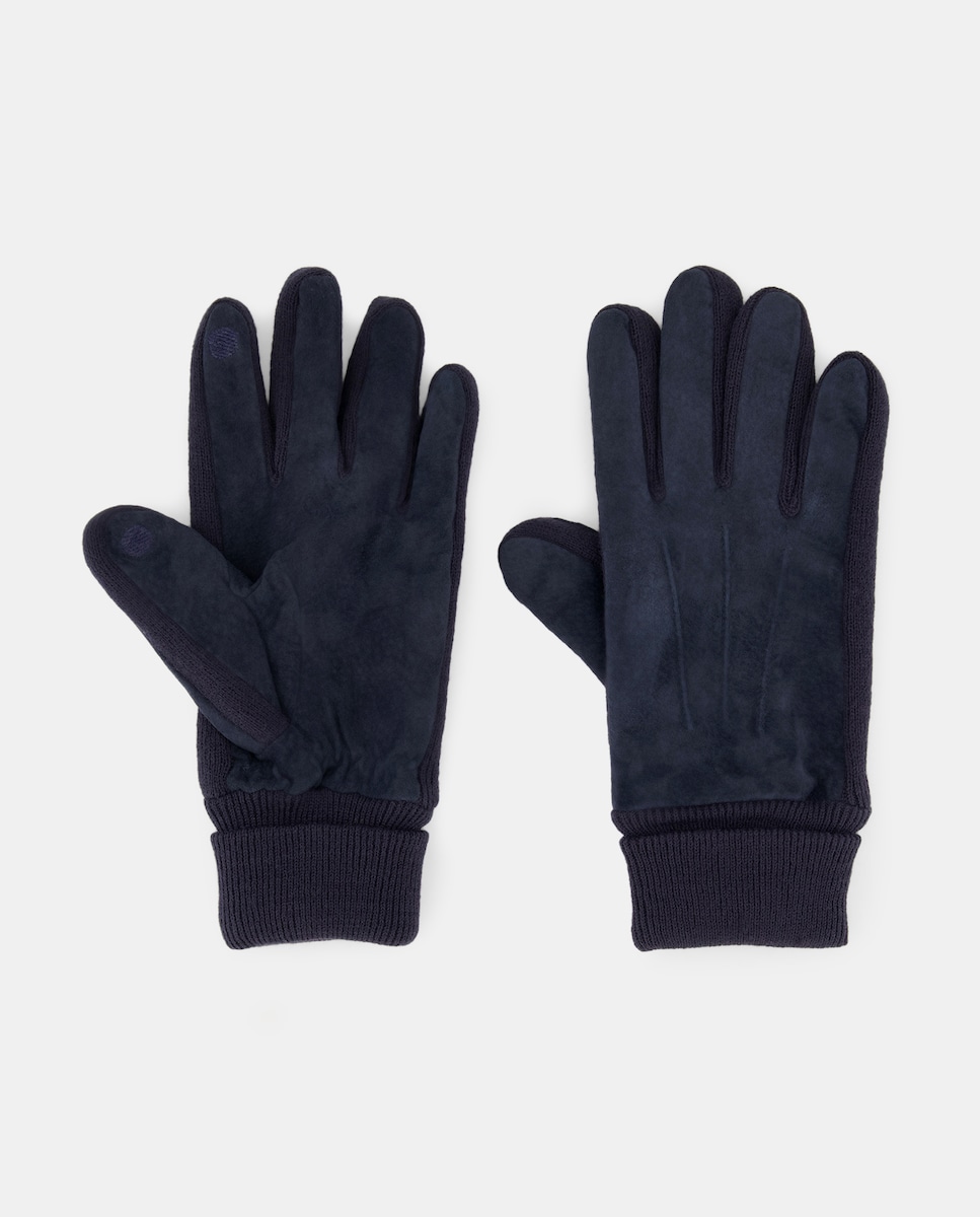 Luvas de Malha e Pele com Padrão Espinha de Peixe