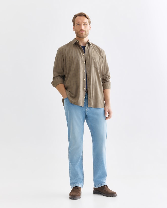 DustinCamisa Casual de Tamanhos Grandes em Sarja com Manga Comprida aos Quadrados e Corte Regular.2 CoresAdicionar